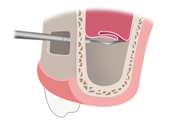 상악동쪽에 구멍을 내 골이식재를 넣어 잇몸뼈를 두텁게 만드는 과정으로 진행되며,