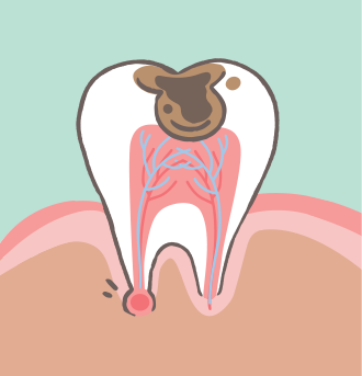 충치, 세균 침투, 외상 등의 이유로 치아의 신경조직이